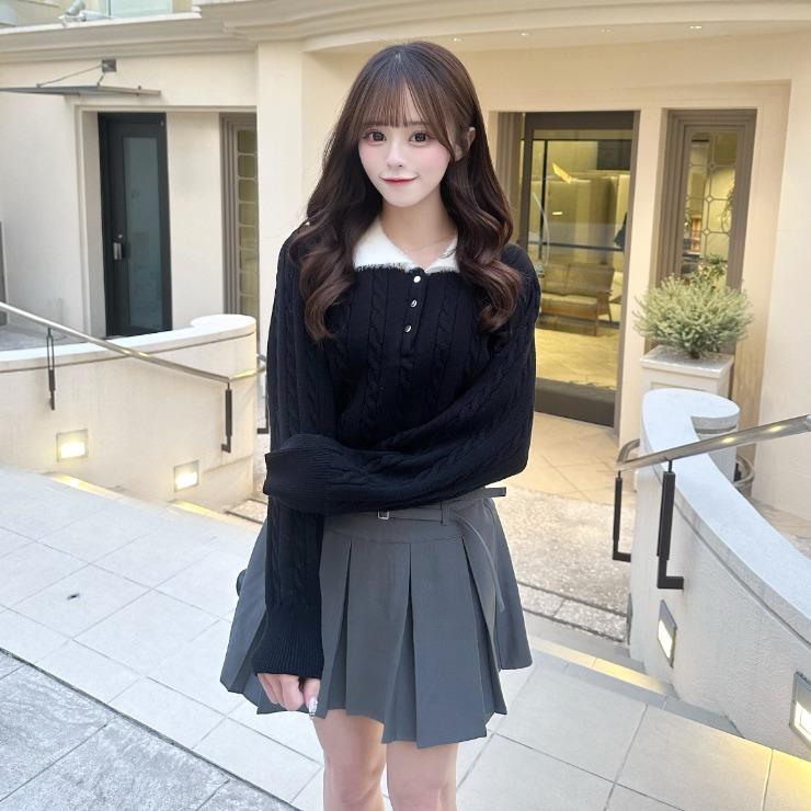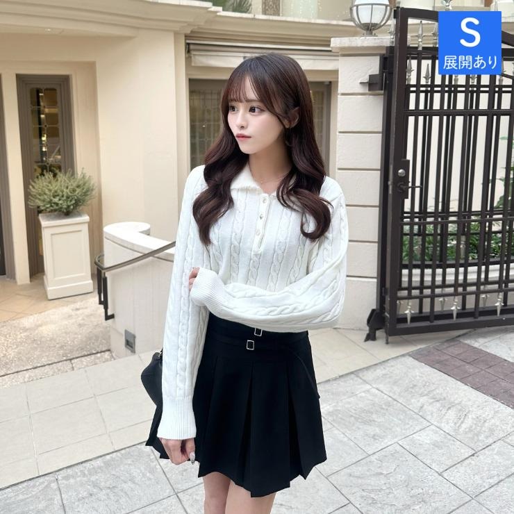 レディース シャギー襟ケーブルニットプルオーバー(さやぽん)
