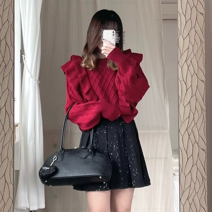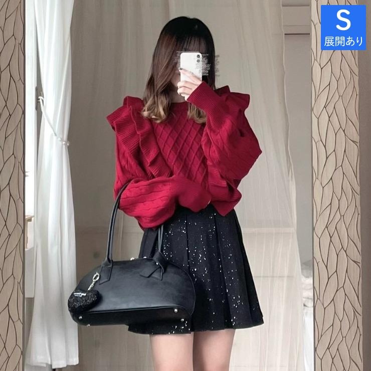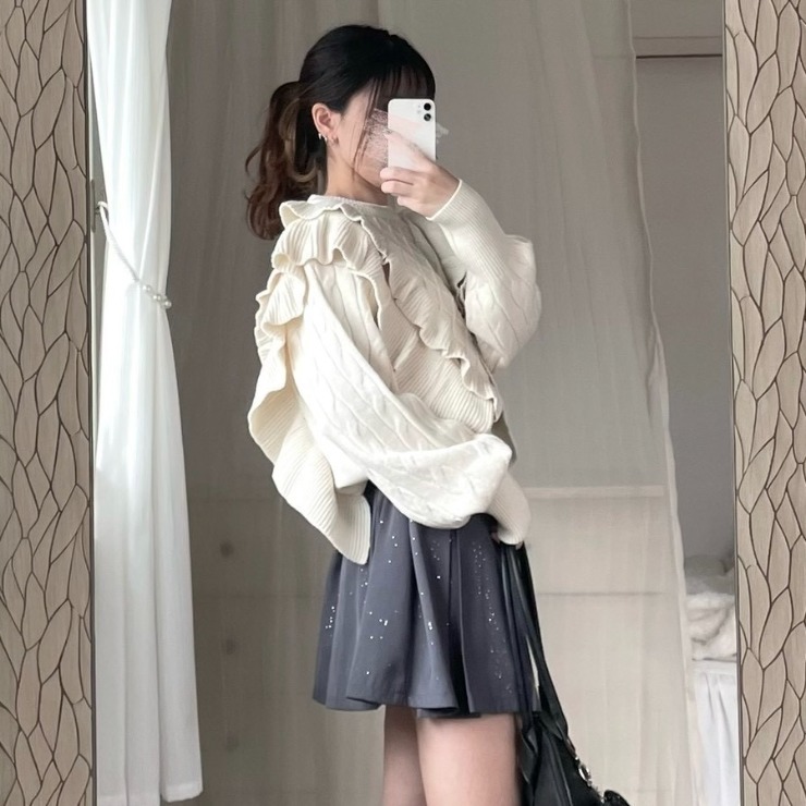 レディース フリルケーブル編みニットプルオーバー(ERIKA)