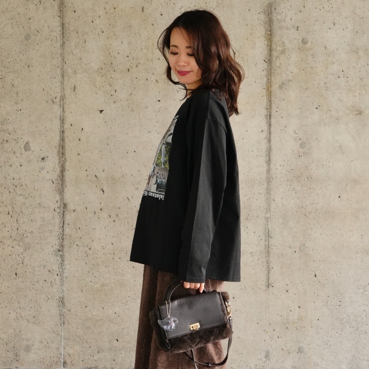 何かにハグをしているような写真を9枚集めたデザイン。サラッとした柔らかい素材が着心地も抜群な1枚です◎