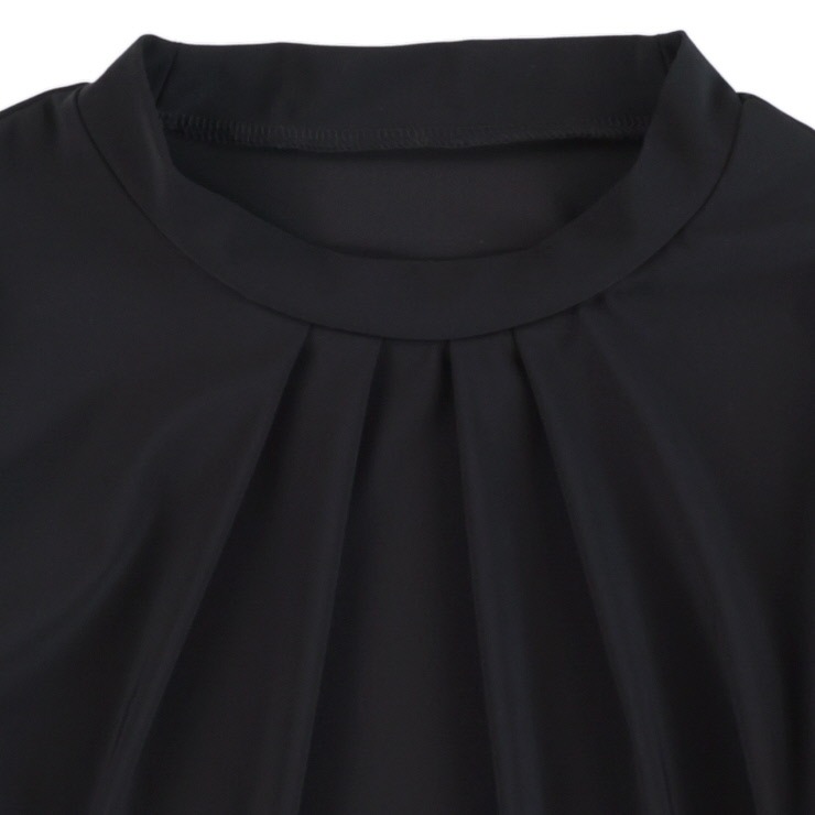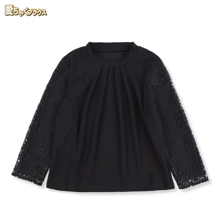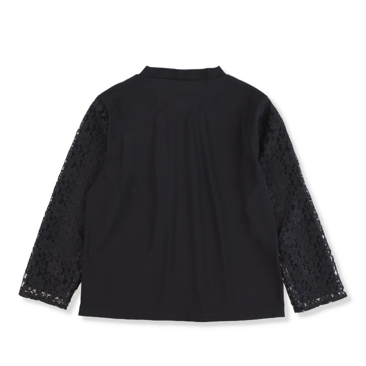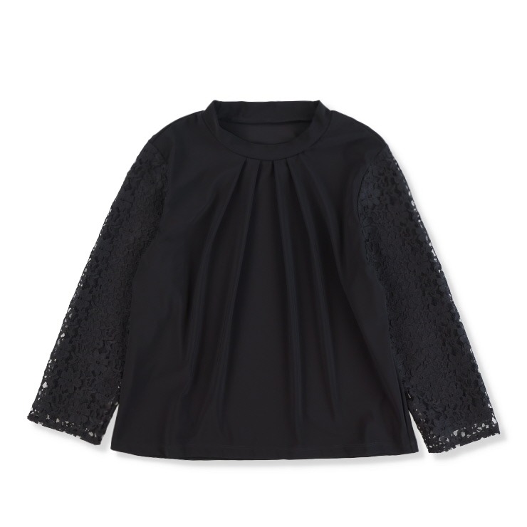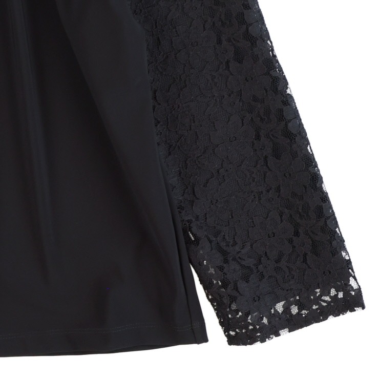 フロントタックが美しいドレープを描き、レース袖は二重仕立てで透け感も安心。 フォーマルも日常も、スマートに着こなせる一枚です。