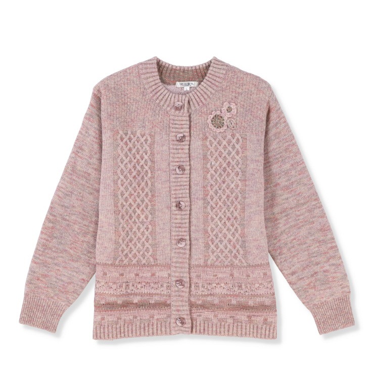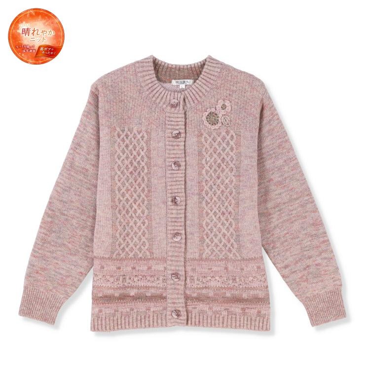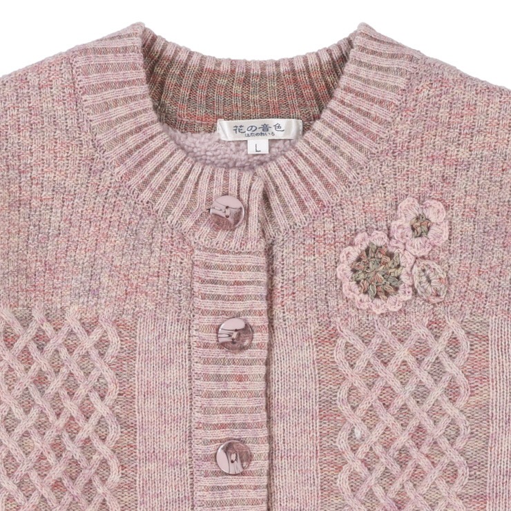 手編みのかぎ針モチーフがアクセントのニットカーディガンは、