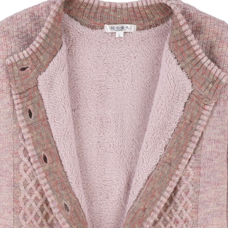 細かな格子とケーブル柄の編み模様のはいったカーディガンに仕上げました。