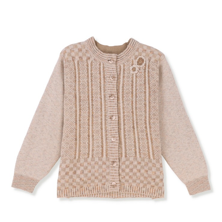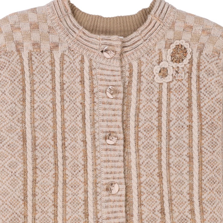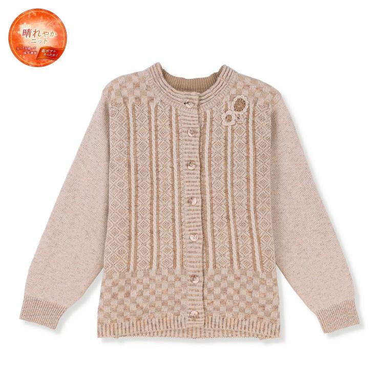 細かな格子と菱柄の編み模様のはいったカーディガンに仕上げました。