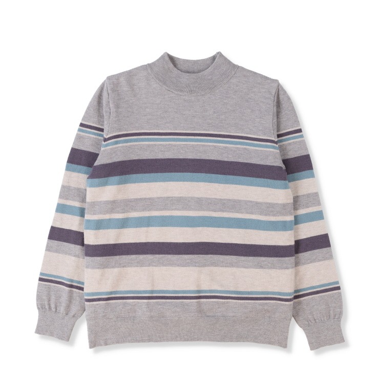 マルチカラーで華やかな印象のニットプルオーバーです。裏地にベロア素材を使用しており、ハイネックの仕様なので、とてもあったかな優秀ニットです。ご家庭での洗濯機洗いも可能でお手入れ楽ちん!