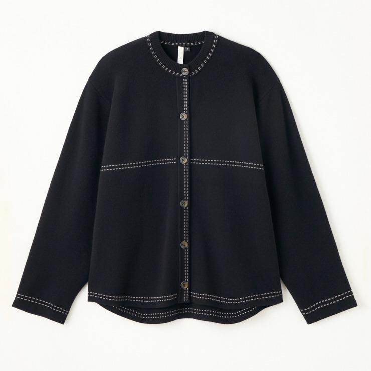配色ステッチデザインがトレンド感◎なニットジャケット。
