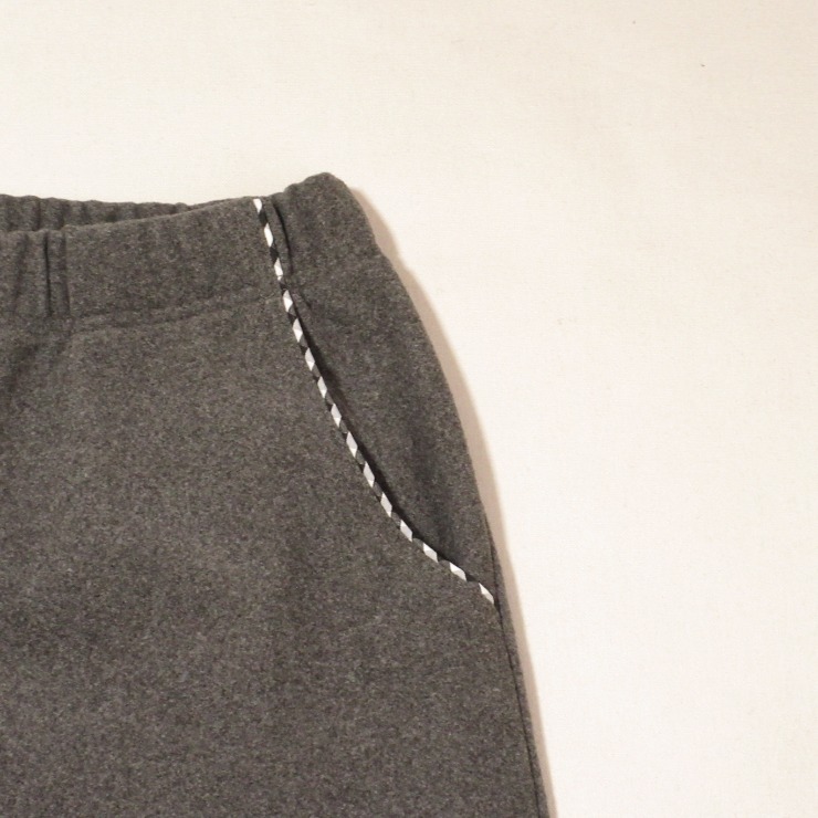 ウエストゴム、ポケット付き。