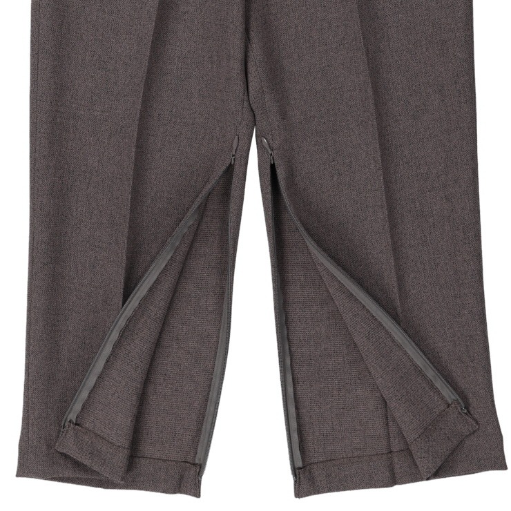 ほど良い厚みがあり、なめらかな風合いが特徴の杢調ベネシャン生地を使用。ひざ下ファスナーで裾が開くので診療やお風呂掃除に役立つ実用性を兼ね備えたパンツです。ウエストにはBBワッフル柔らかゴム仕様で締め付け感もなく脱ぎ着も楽らくです。