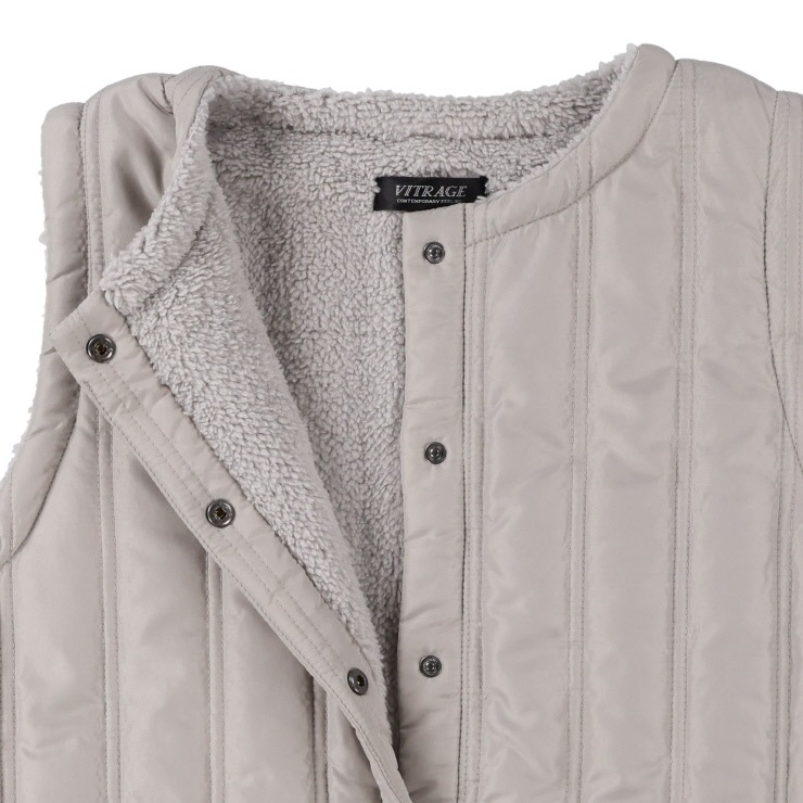 思わず頬ずりしたくなる、肌触りのよいソフトタッチのボアを使用した裏ボアベストです。