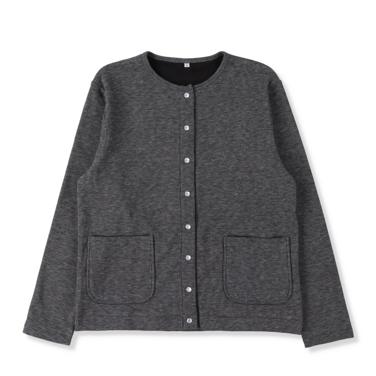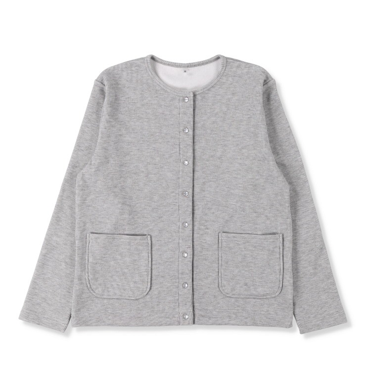 ストレッチ性のある裏ピーチ起毛素材を使用した着心地楽々、暖かカーデです。