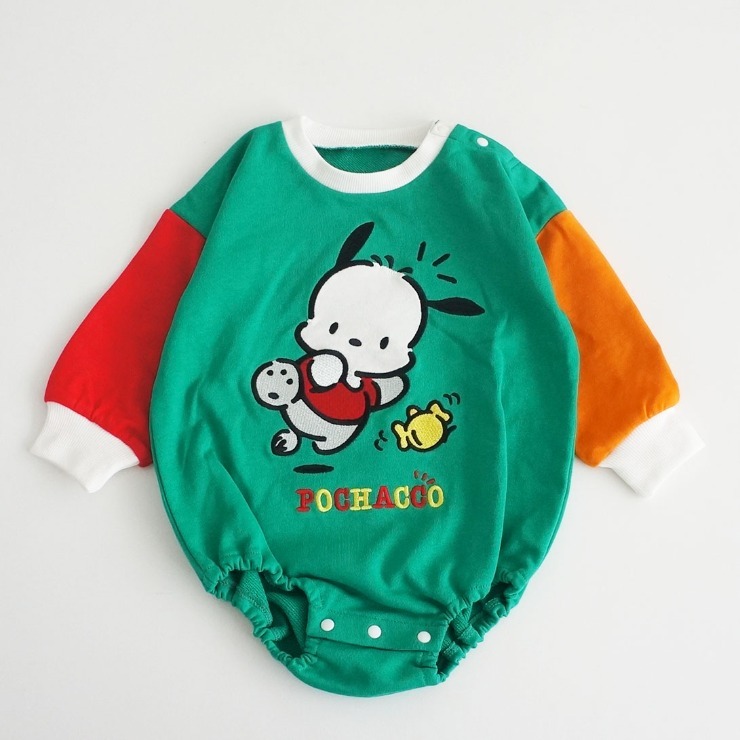 どーんと大きなポチャッコのアップリケが目を惹くロンパース♪