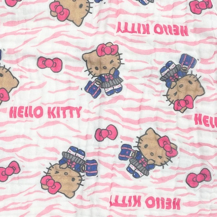 「サンリオキャラクターコギャル風キティゼブラ柄」のガーゼスリーパーです。 ふんわりガーゼ生地で、通気性に優れ、乾きやすいです。