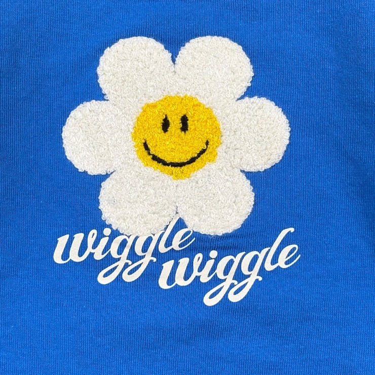 ブランドのアイコンであるデイジーをドーンと大きくサガラ刺繍しました。