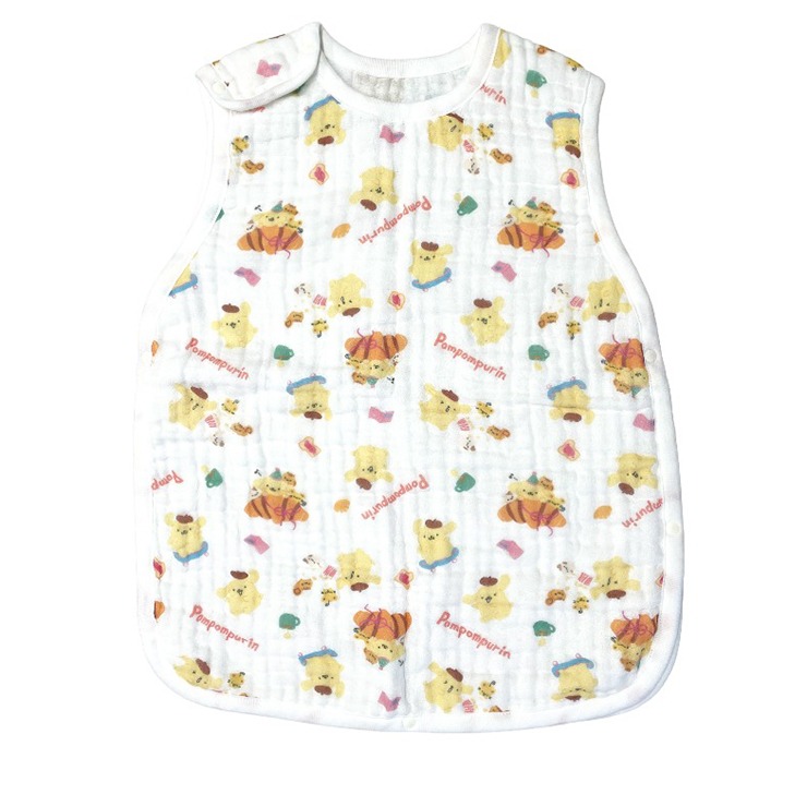 「サンリオキャラクターポムポムプリン柄」の2WAYタイプ、ガーゼスリーパーです。 ふんわりガーゼ生地で、通気性に優れ、乾きやすいです。