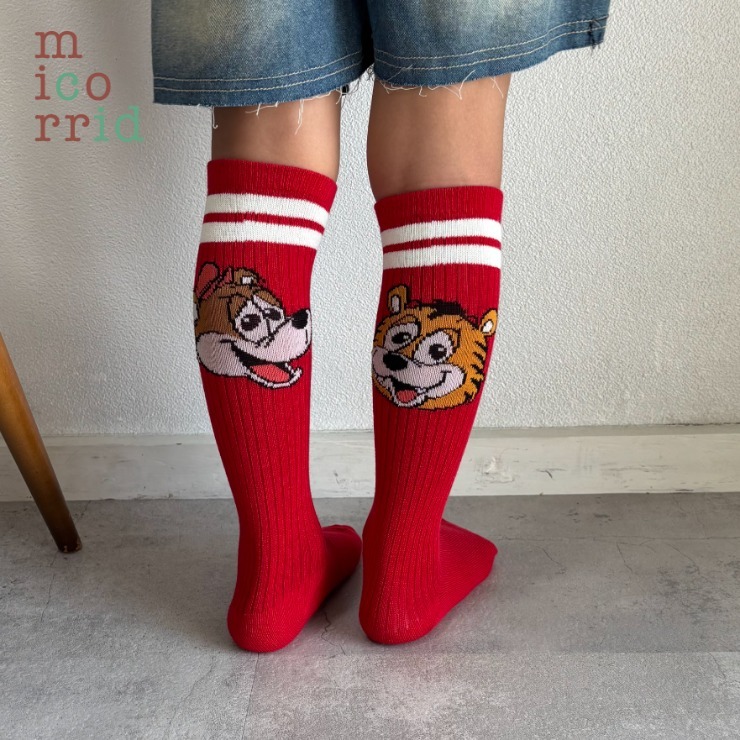 レトロテイストなクマとトラが後ろに入ったハイソックスです!