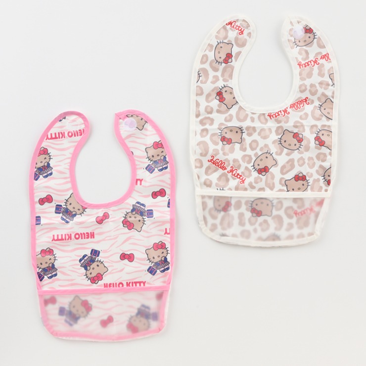 「サンリオキャラクターズコギャル風キティ柄」のお食事用エプロン。 2枚組。
