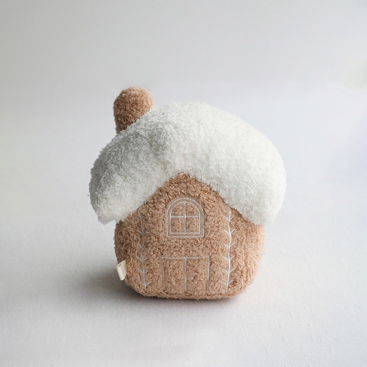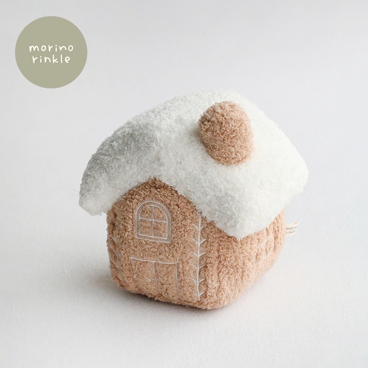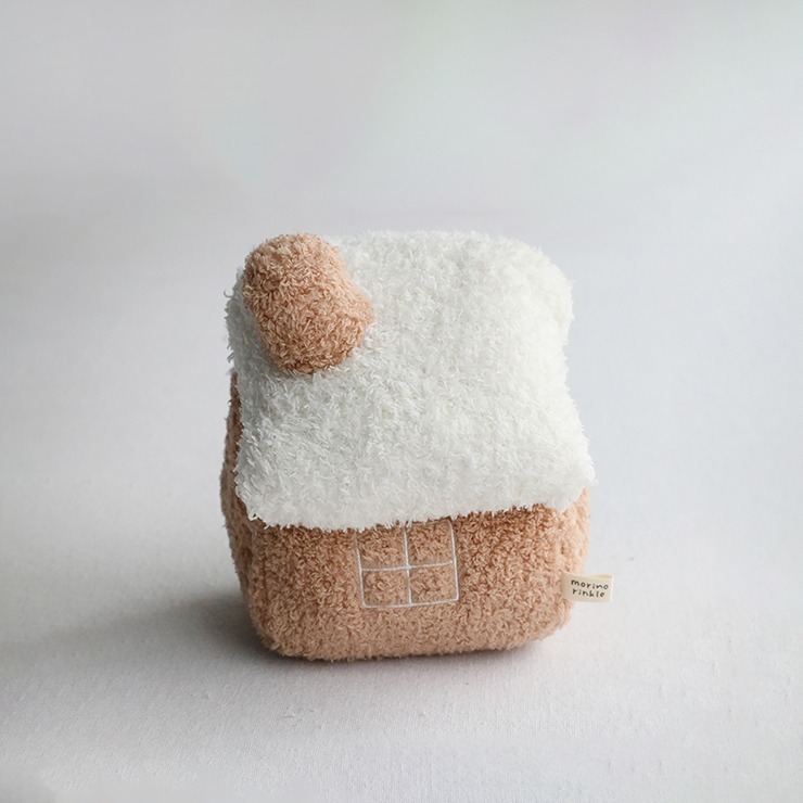やさしい音色にふわふわの生地のお家の形をしたラトルです。