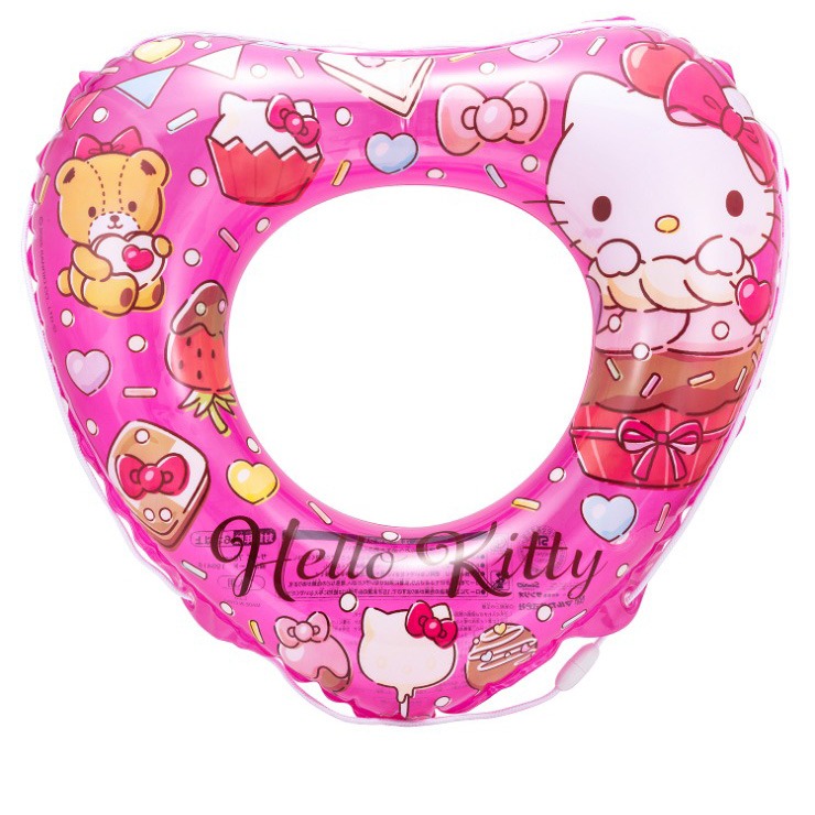 ハートの形をした珍しくもかわいい浮き輪です。スイーツをモチーフにハローキティがプリントされています。空気を入れた時の内周サイズは、95~100センチメートルです。