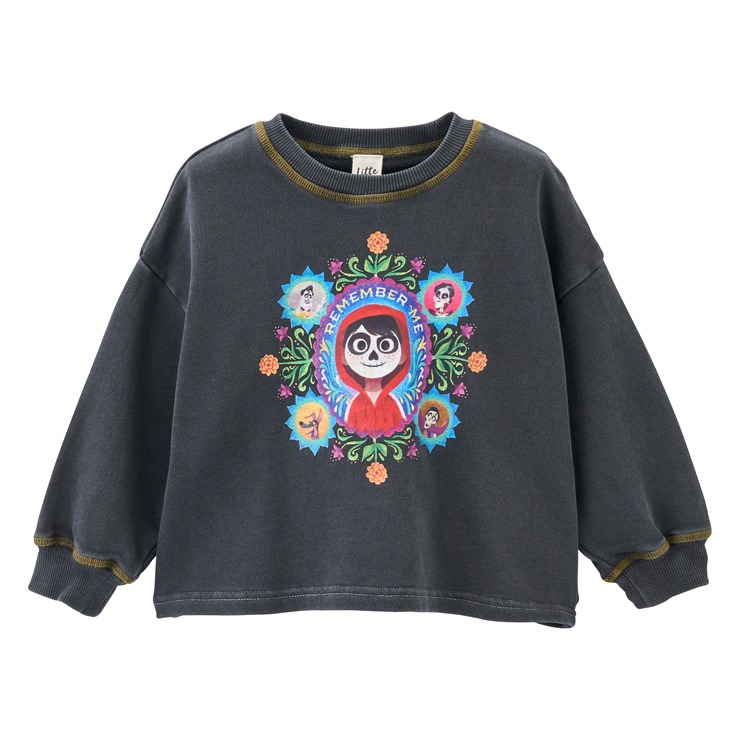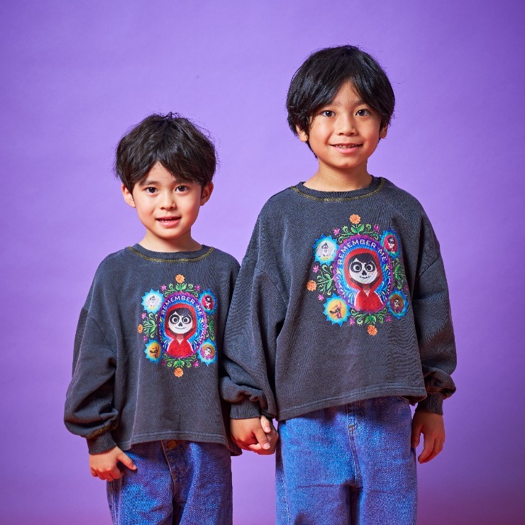 リメンバーミーのキャラクターをプリントした、裏毛素材のトレーナーです。