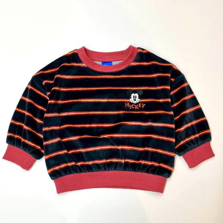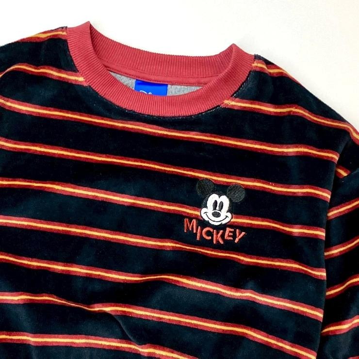 人気ディズニーキャラクターのワンポイント刺繍が可愛い、ボーダートレーナーをご紹介!柔らかく光沢があり、保温性に優れた綿ベロア素材を使用しています。