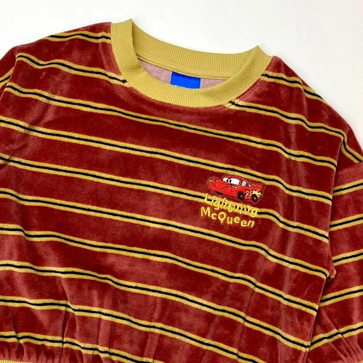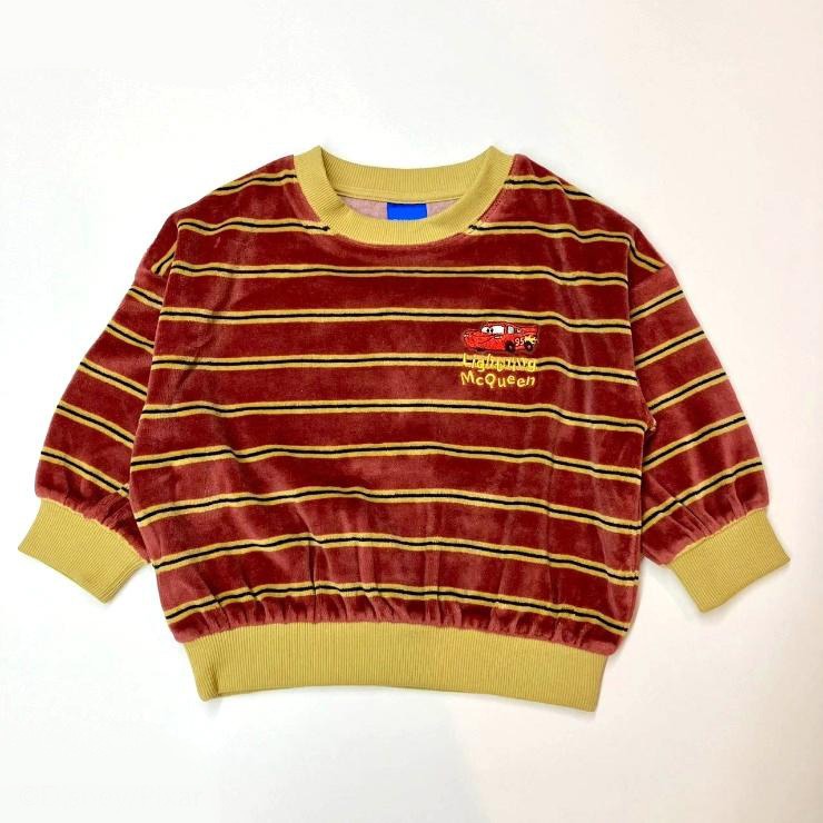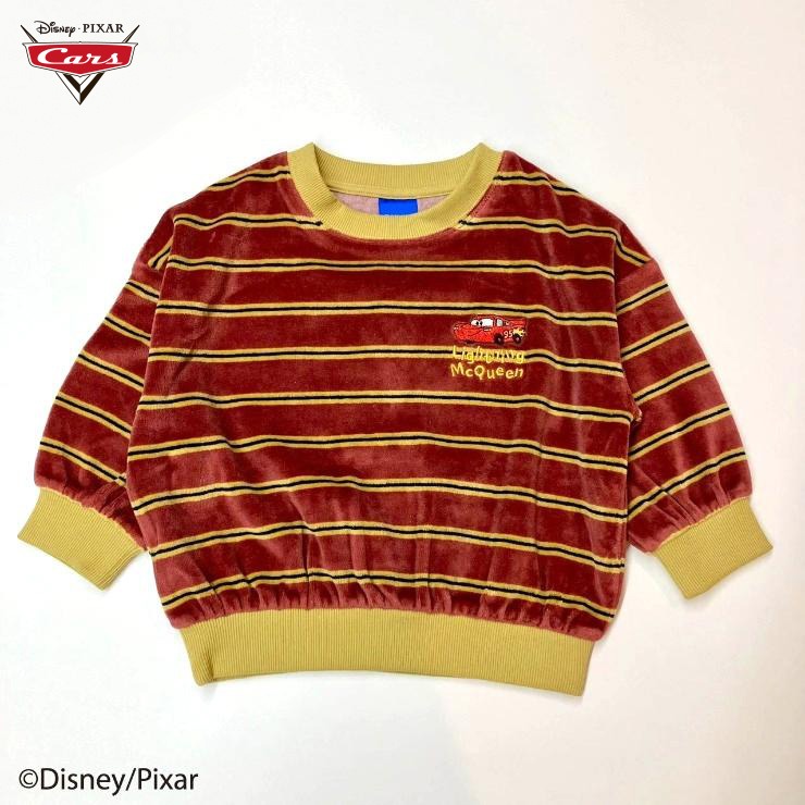 人気ピクサーキャラクターのワンポイント刺繍が可愛い、ボーダートレーナーをご紹介!柔らかく光沢があり、保温性に優れた綿ベロア素材を使用しています。
