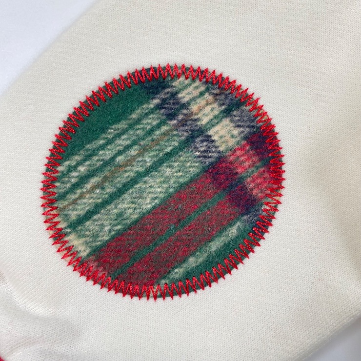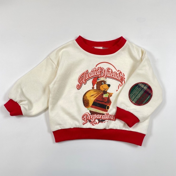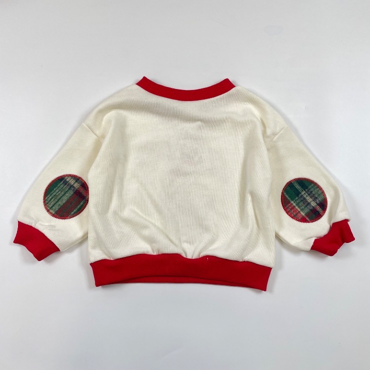 チェックのエルボーパッチがポイントの裏毛素材のトレーナーです。
