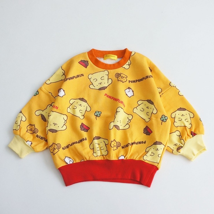 カラフルでかわいいポムポムプリンの総柄トレーナー♪