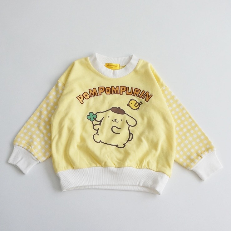 ギンガムチェックの袖がとっても可愛いポムポムプリンのトレーナー♪