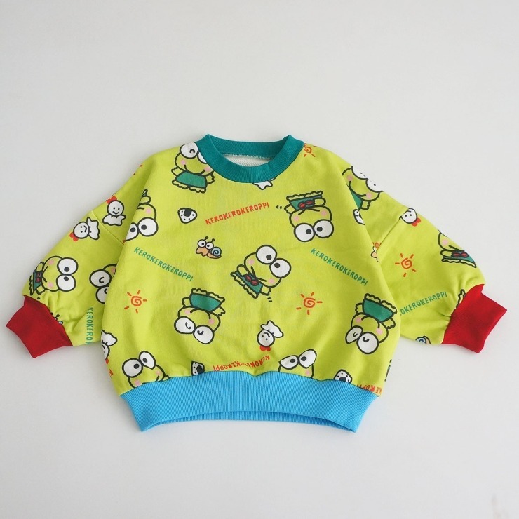 カラフルでかわいいけろけろけろっぴの総柄トレーナー♪