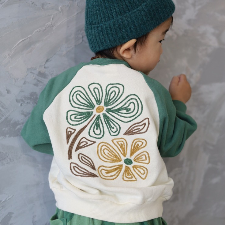 ラグラン配色で後ろの刺繍がオシャレなデザインになっております!