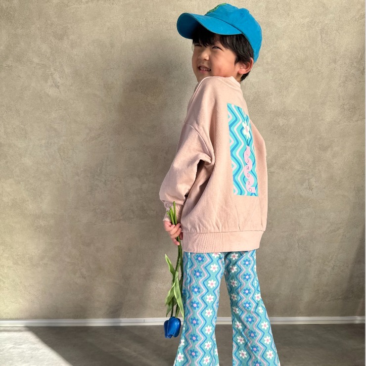 フラワー柄フレアレギンスとセットアップ風に着るのもおすすめです♪