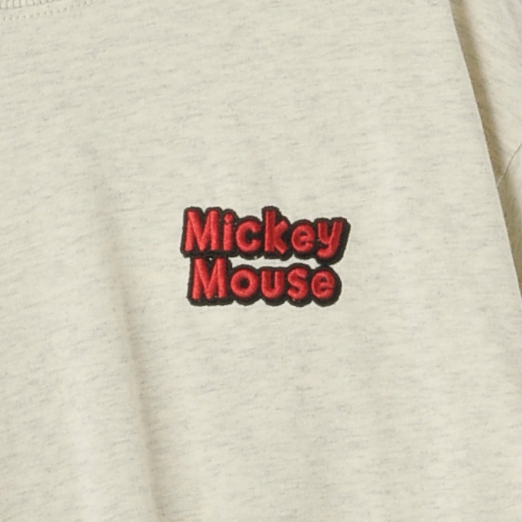 バックにスマイルミッキーのサガラ刺繍、フロントの胸元にもロゴ刺繍入り♪