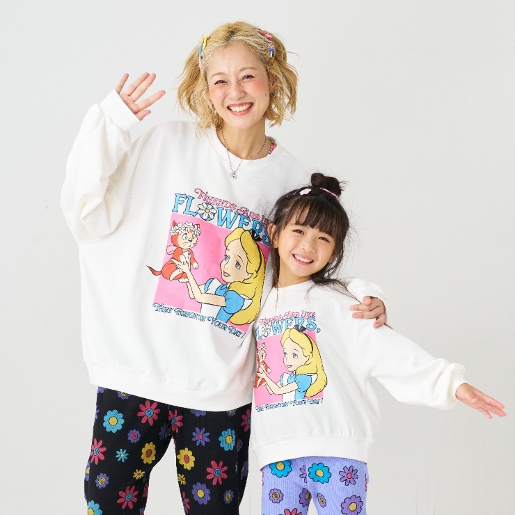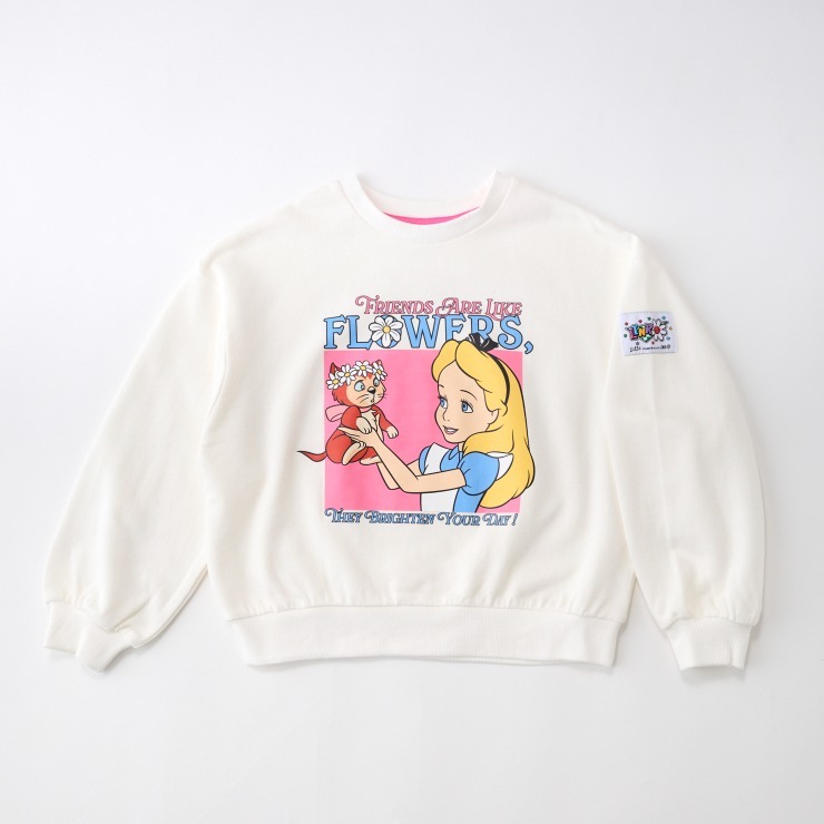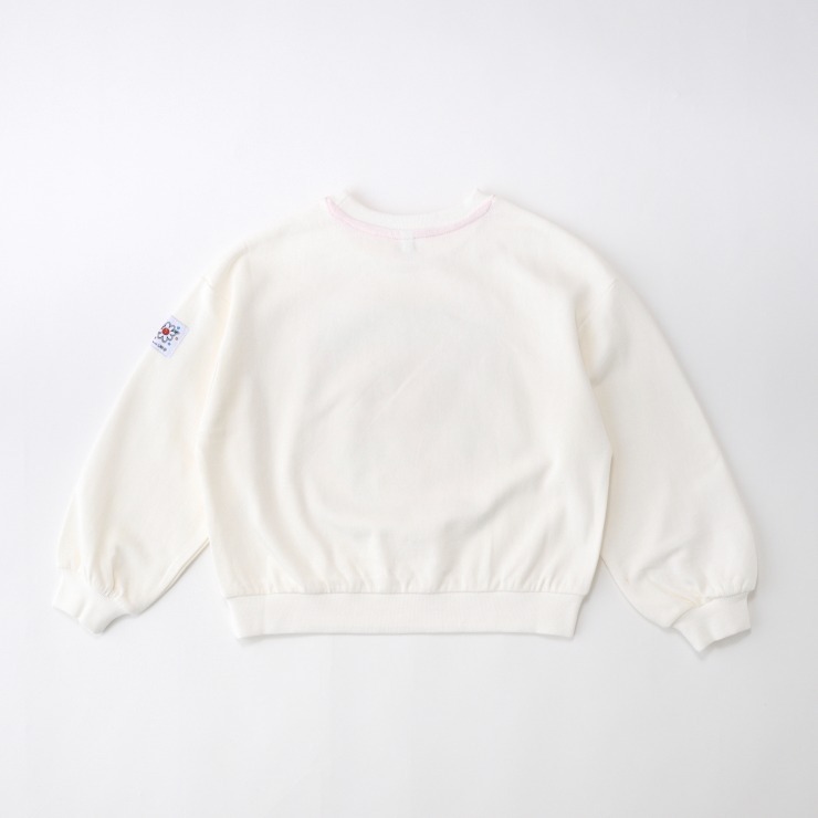 キャラクターのプリントがかわいい、裏毛素材のトレーナーです。