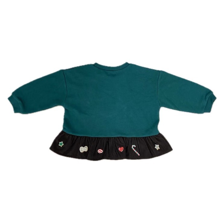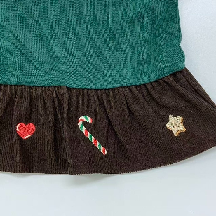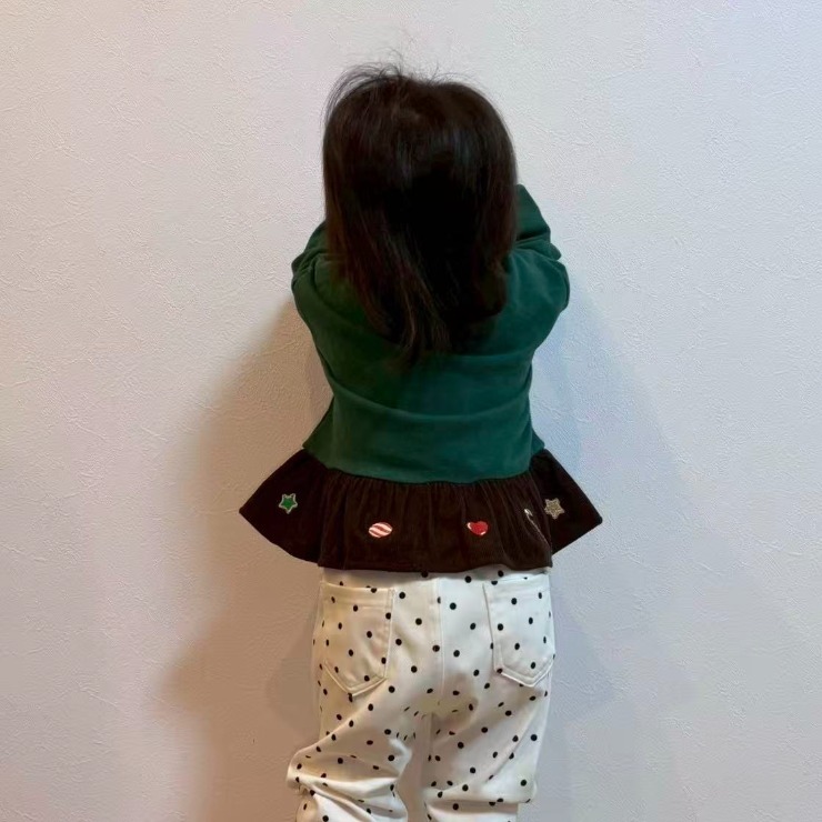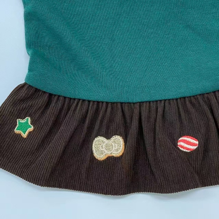 裾の部分はコーディロイの切替となっており、星やステッキなどのモチーフが刺しゅうされています。