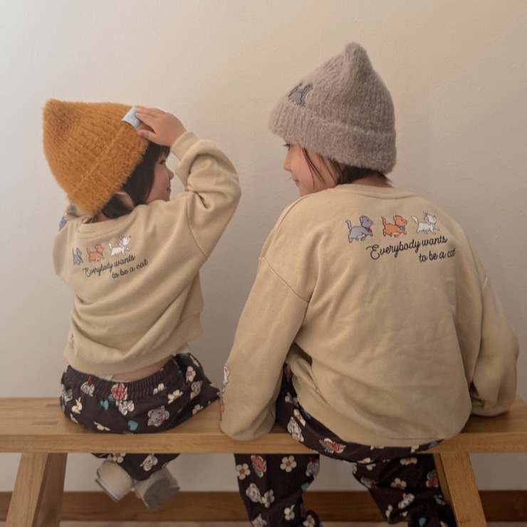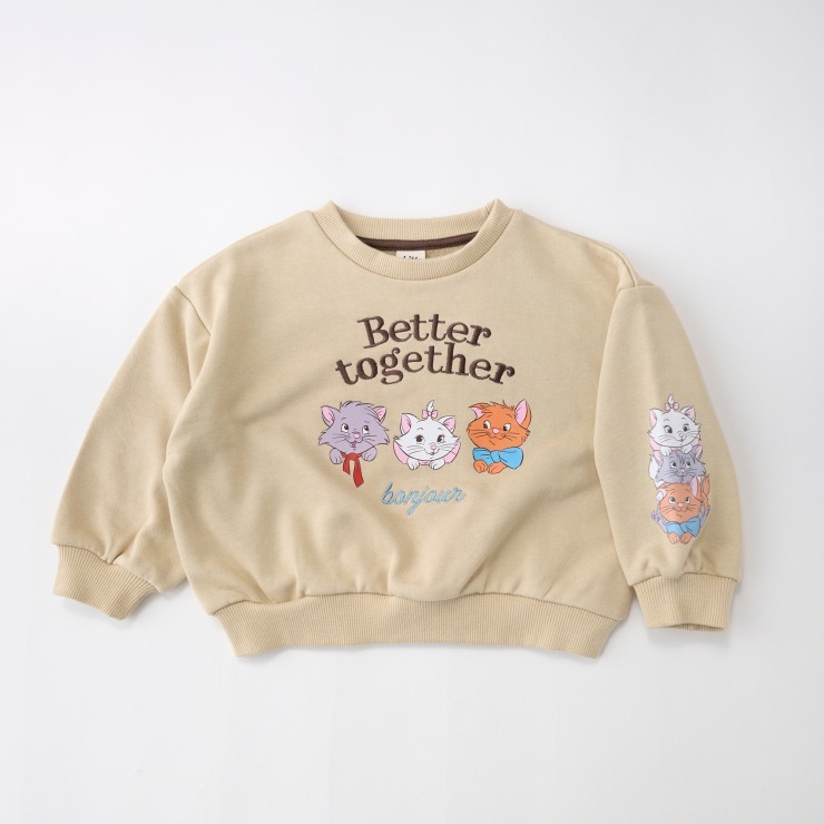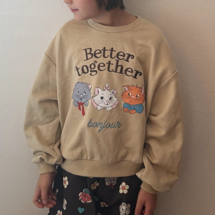 キャラクターのプリントがかわいい、裏毛素材のトレーナーです。