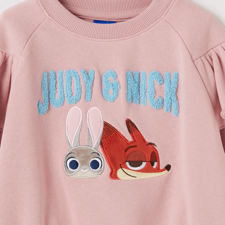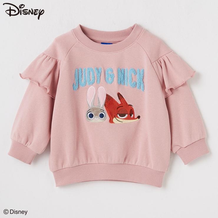 ディズニーとコラボレーションの裏毛トレーナーは、ニックとジュディのベロア刺繍入り。