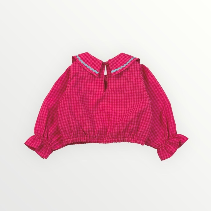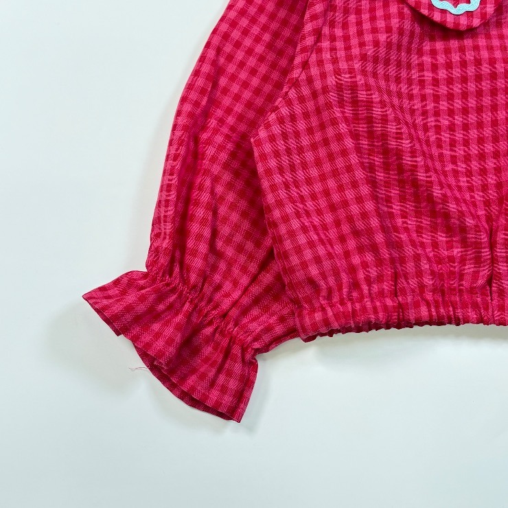 Red×pinkのギンガムチェックがかわいいブラウスです。