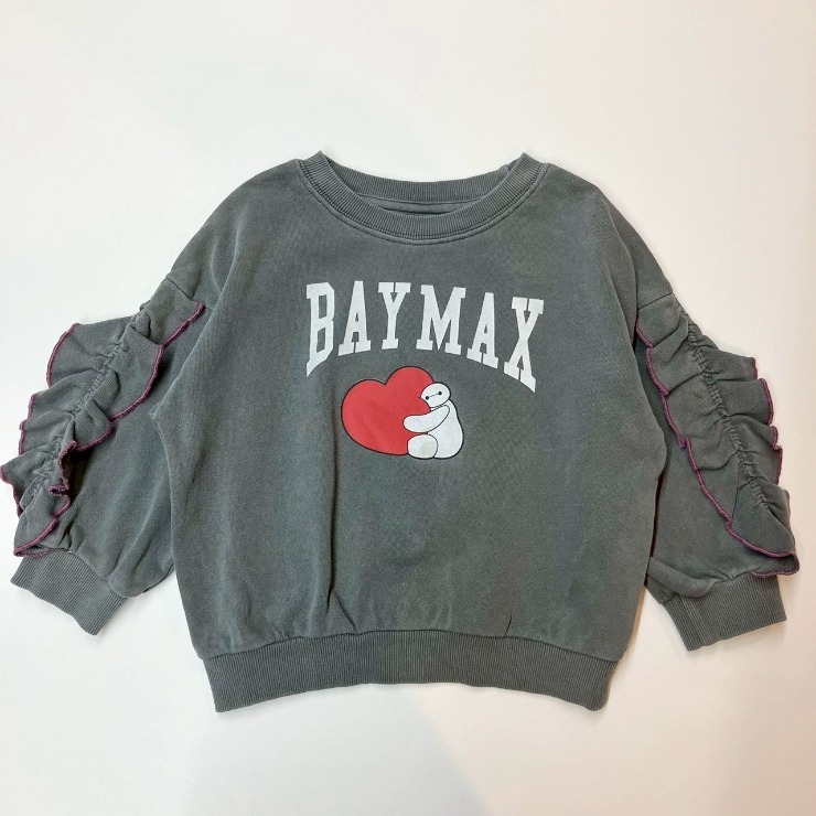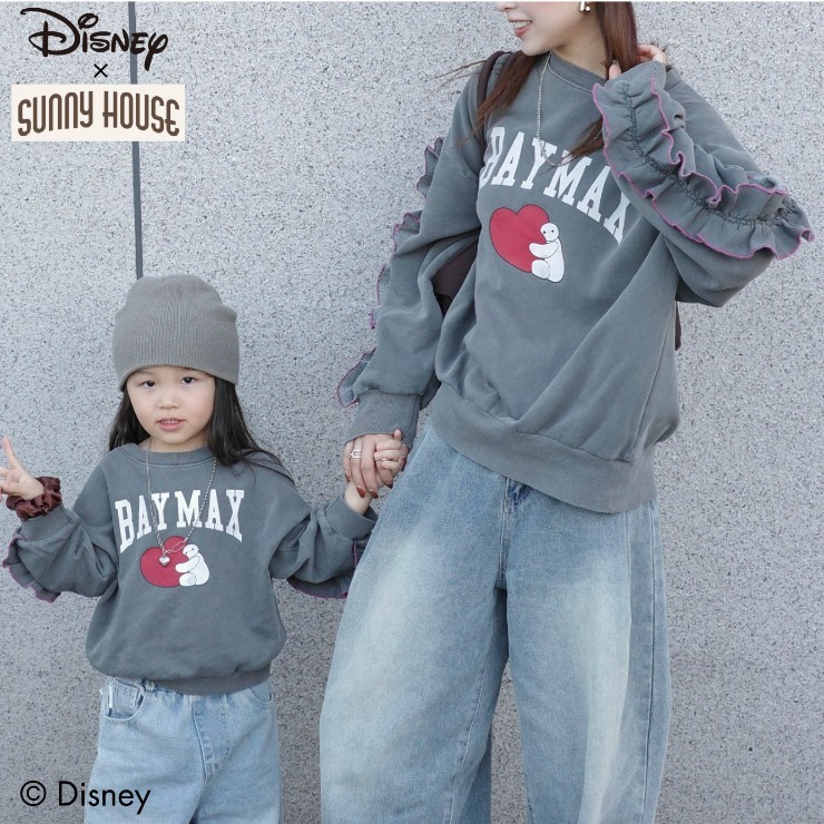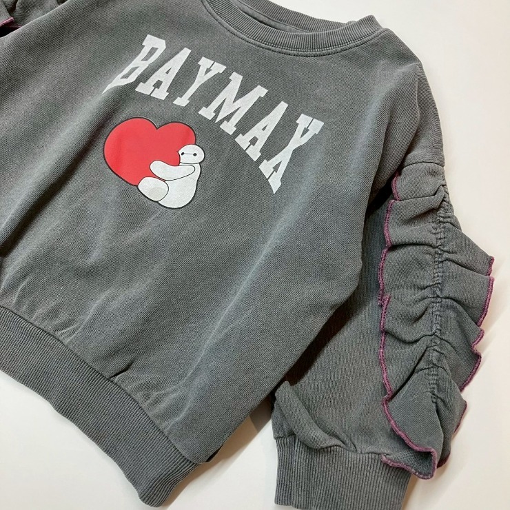 ディズニーとコラボレーションの裏毛トレーナーは、ベイマックスデザインの刺繍入り。