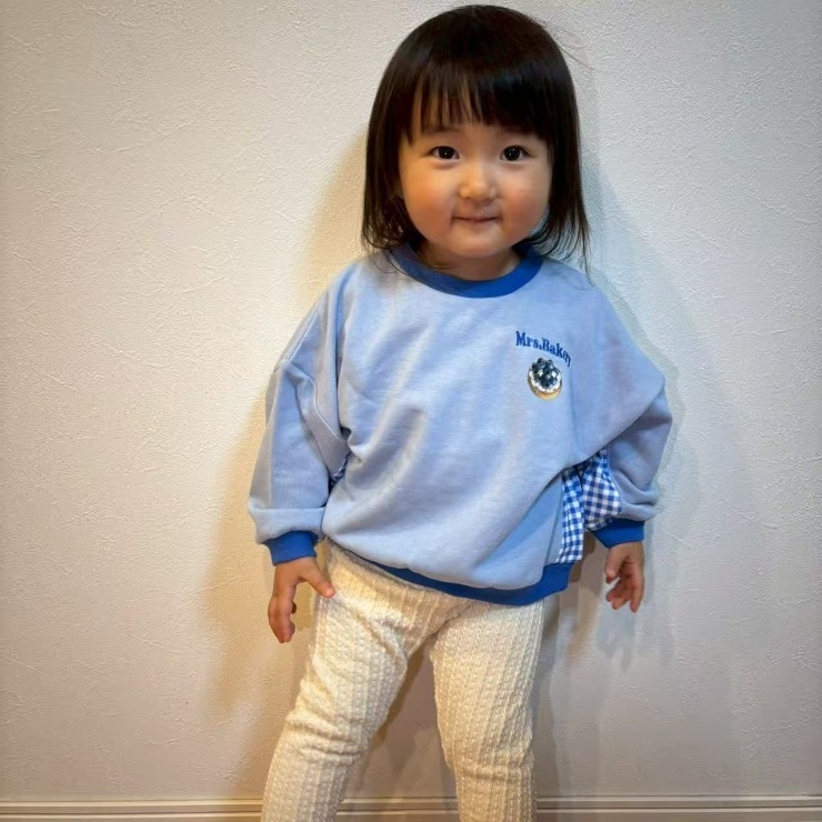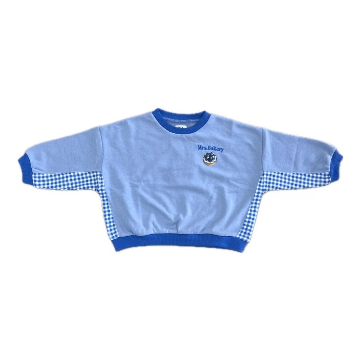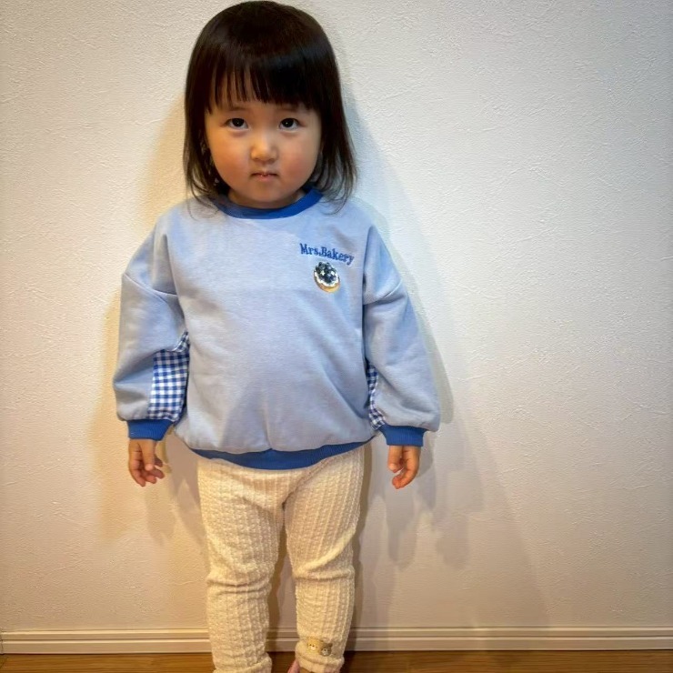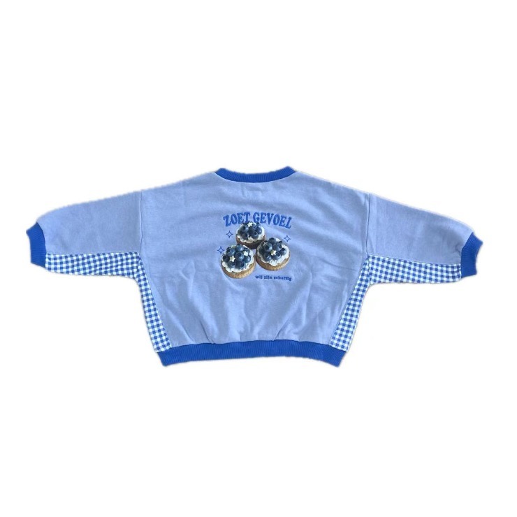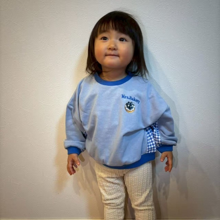 スイーツのプリントはもちろん、チェックの切替デザインもとってもキュートなトレーナーです。