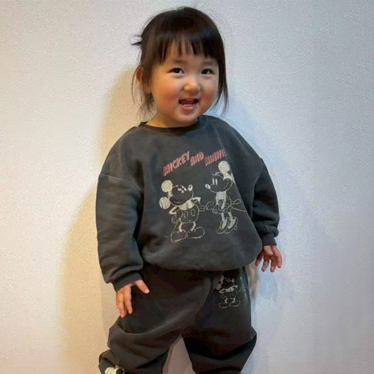 ピグメント加工がカッコいい、レトロタッチのミッキー&ミニーのトレーナーです。