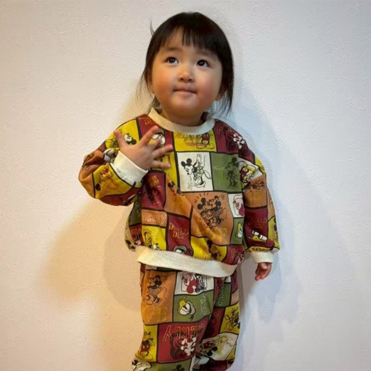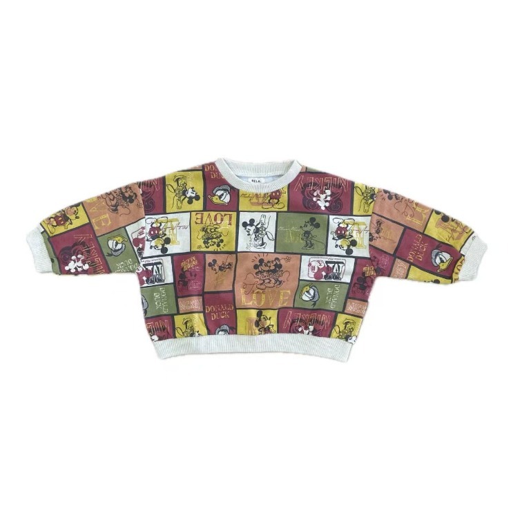 全面にプリントされたレトロタッチのディズニーキャラクターのアートがお洒落なトレーナーです。
