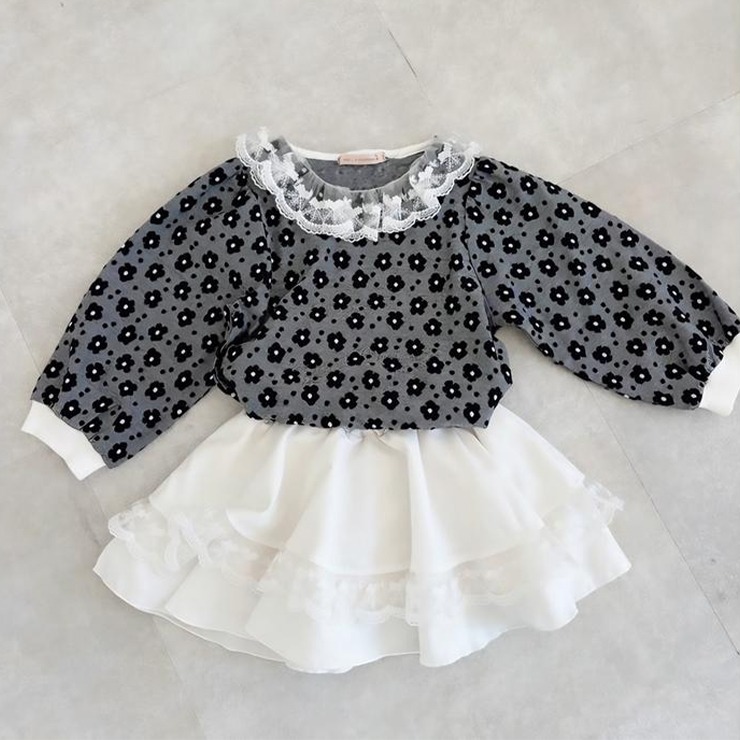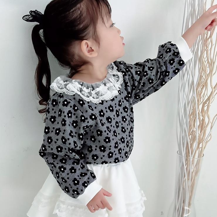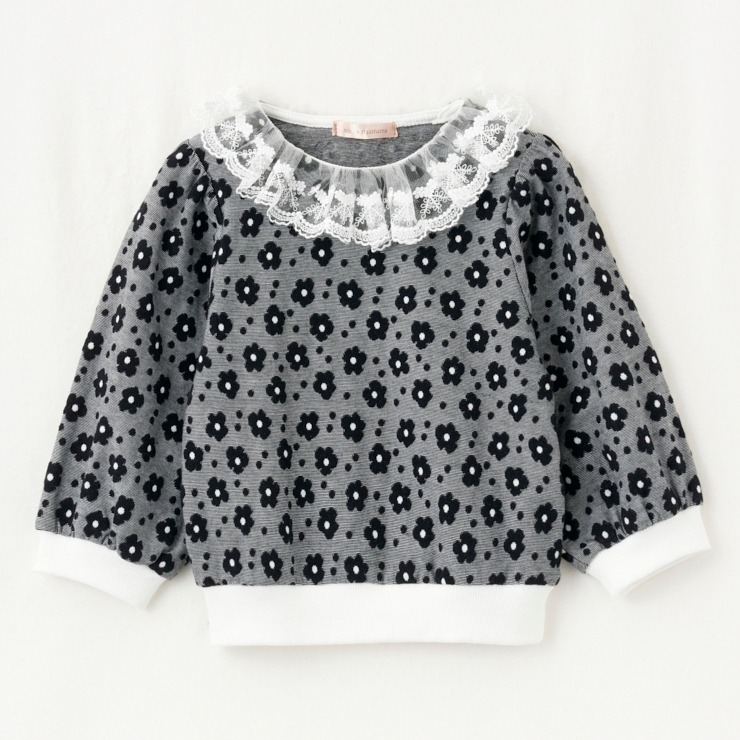 花柄のジャガードと衿のレースが可愛いデザインです♪