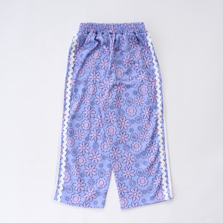 花柄がかわいい、ジャージ素材のロングパンツです。