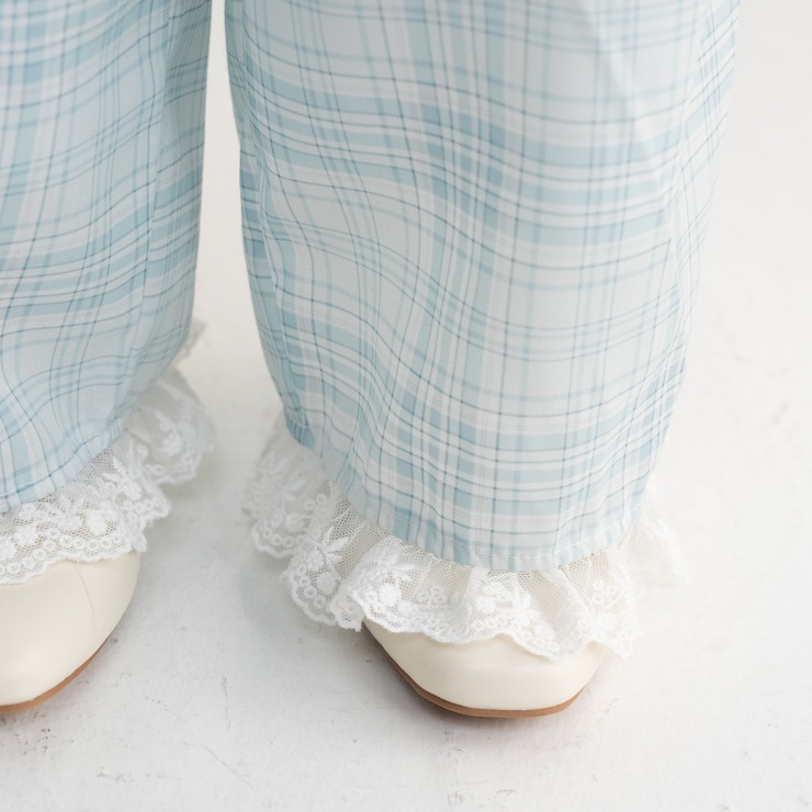 チェックとレースのフリルが可愛いデザインになります。