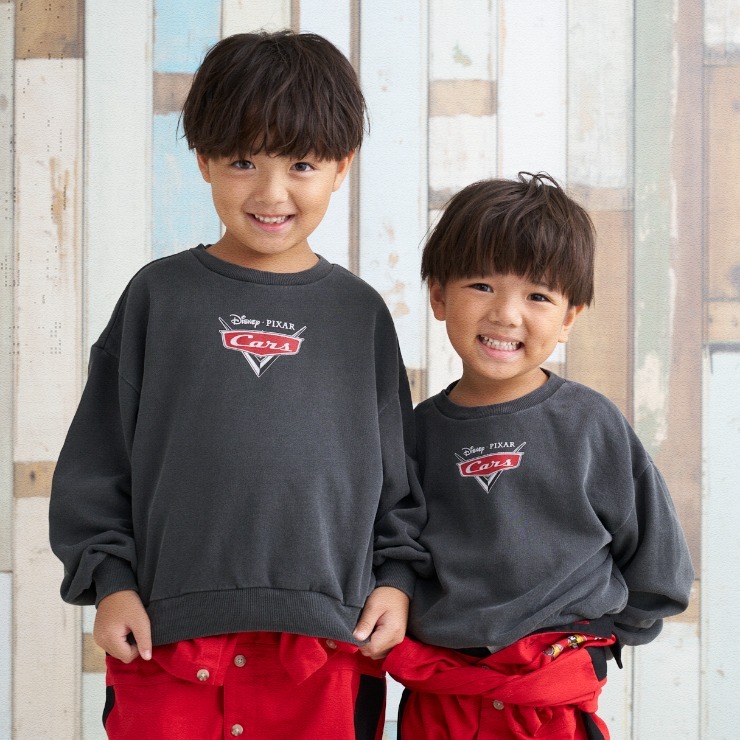 バックにキャラクターのプリントを乗せた、裏毛素材のトレーナーです。