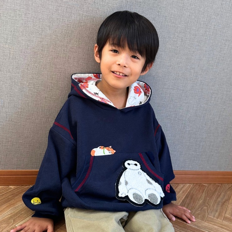 ポケットのキャラクターがかわいい、裏毛素材のパーカです。