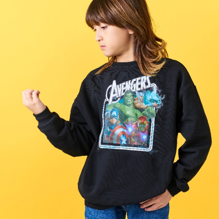 MARVELのキャラクターをプリントした、裏毛素材のトレーナーです。