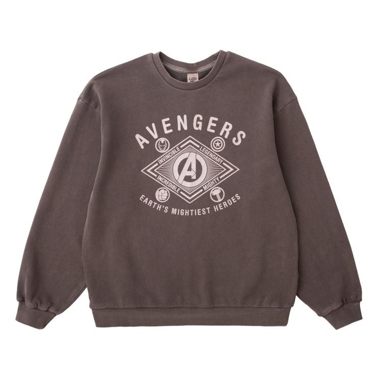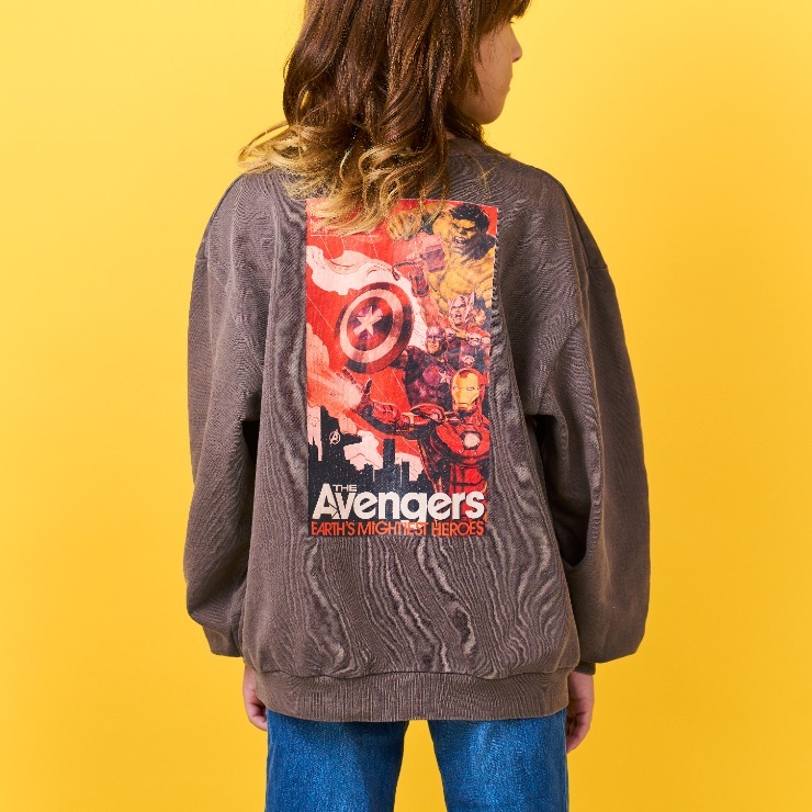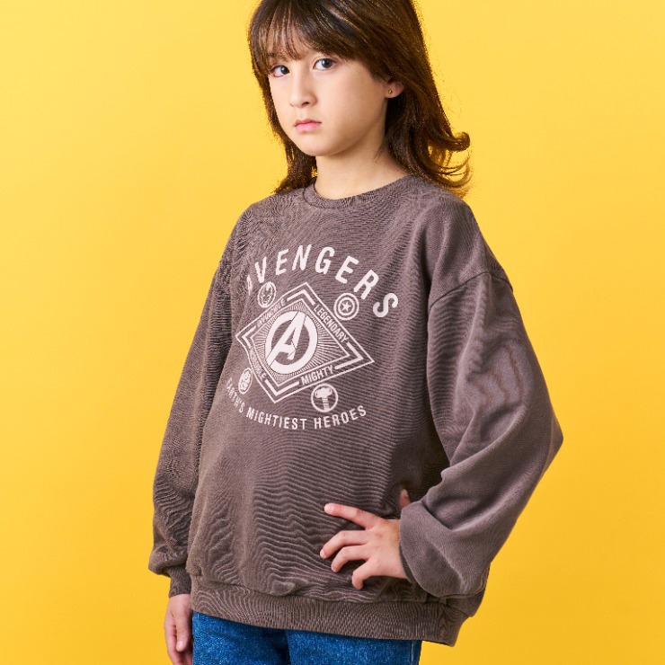 バックにMARVELのキャラクターをプリントした、裏毛素材のトレーナーです。