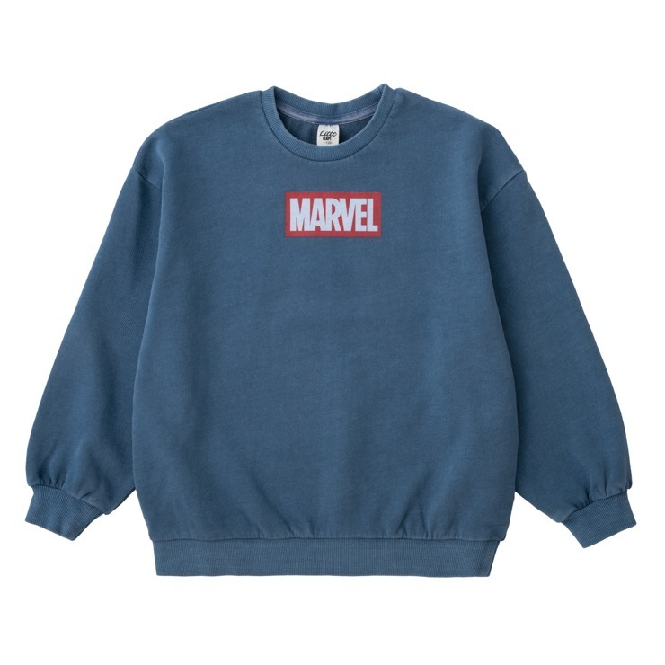 バックにMARVELのキャラクターをプリントした、裏毛素材のトレーナーです。