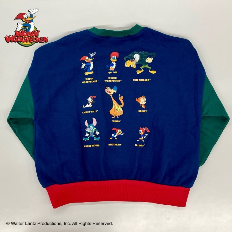 ウッディーウッドペッカーのトレーナーです。袖にもデザインの入ったかわいいアイテムです