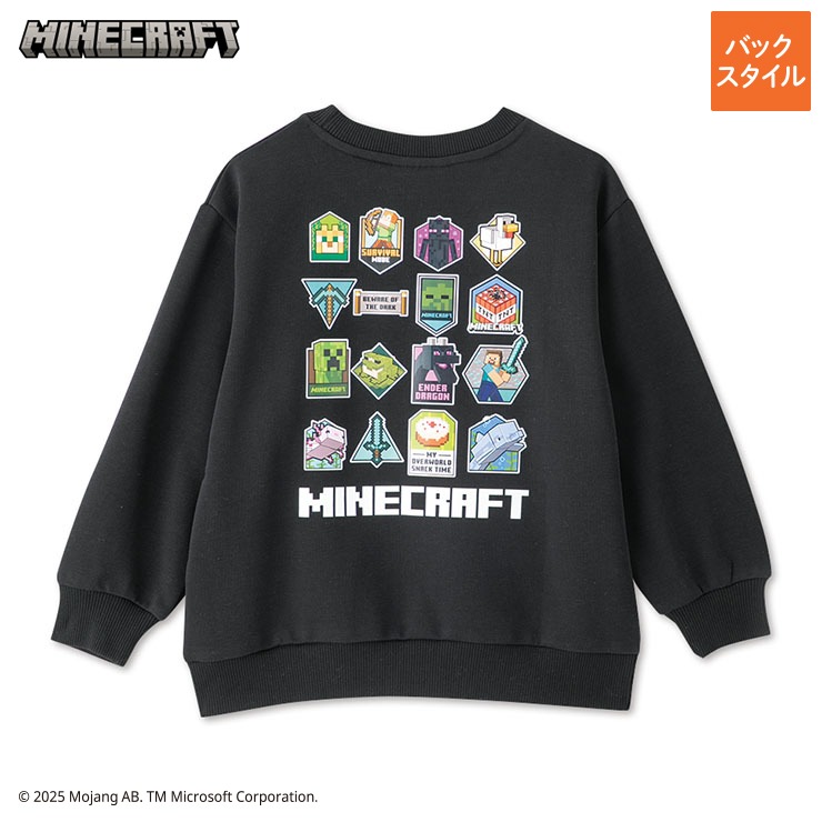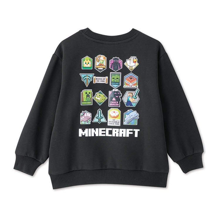 大人気【マインクラフト】からトレーナーが登場★人気キャラクターを集めたバックプリントがかっこいい♪胸元のロゴプリントもクール!お好きなボトムに合わせておしゃれに決めてください♪